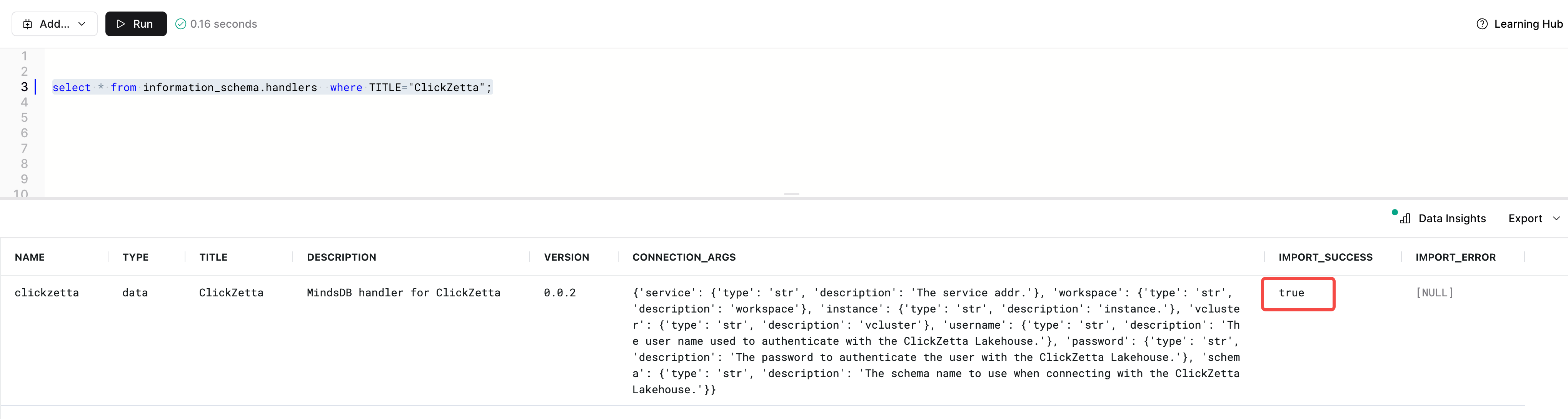 Visit MindsDB Studio Check Singdata Lakehouse Handler status