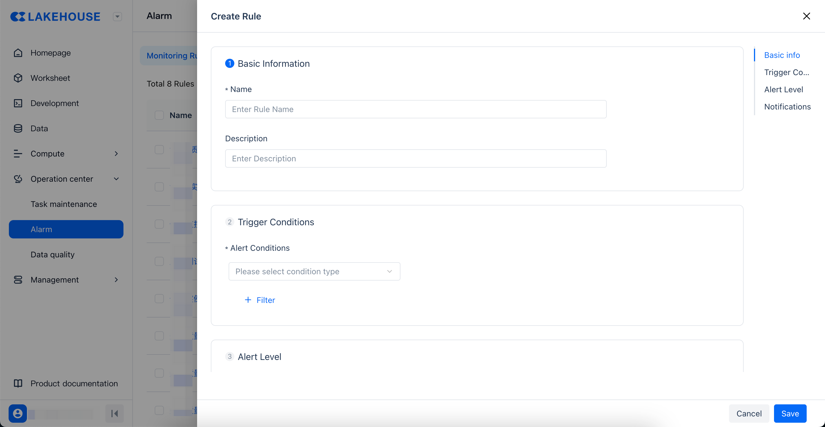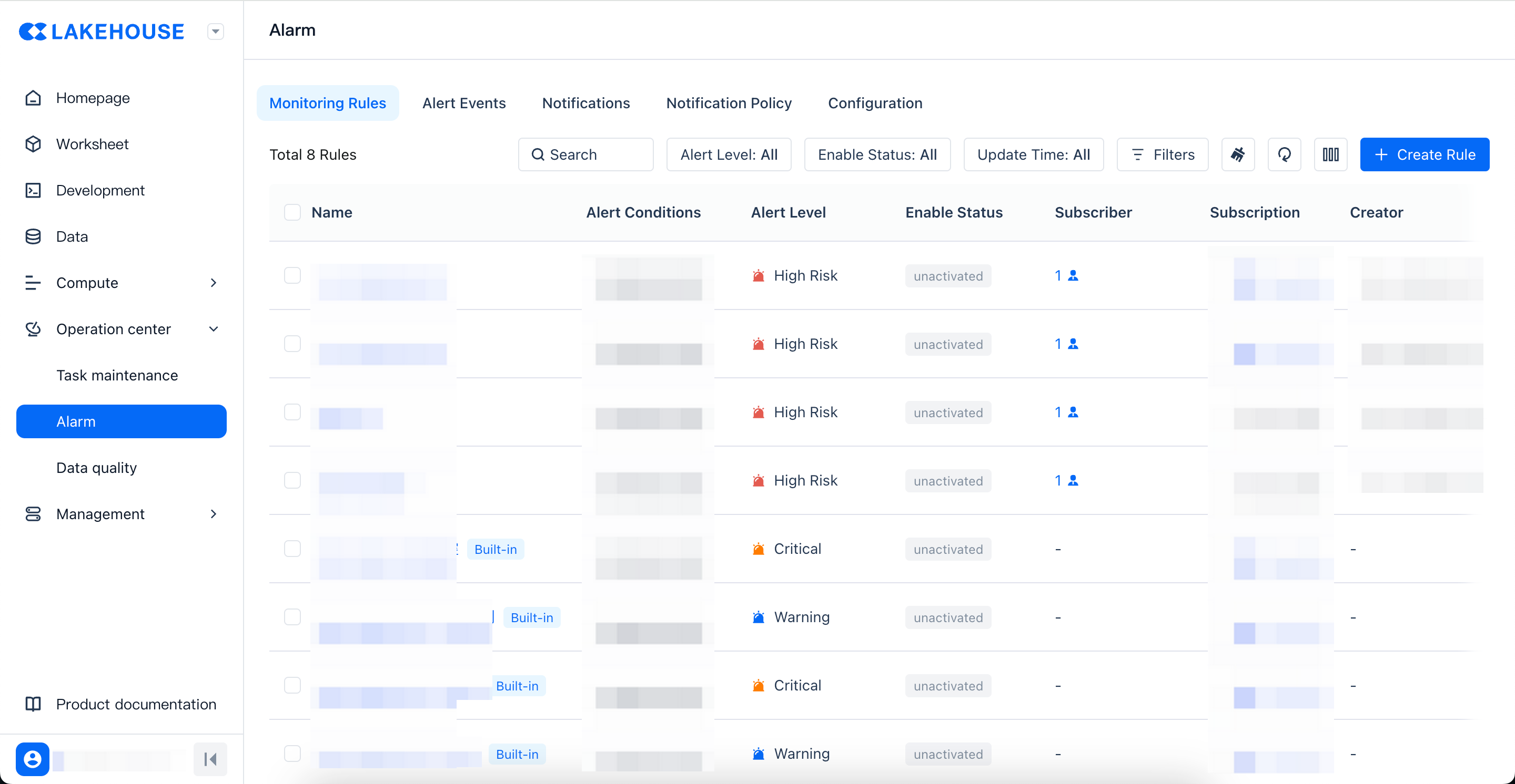 Event monitoring is an alert generated when a specific event or condition occurs. Users can monitor based on the operation and maintenance instances or data quality check rules currently supported in the product. Based on the current behavior supported in the product, the current event monitoring is mainly divided into two categories: