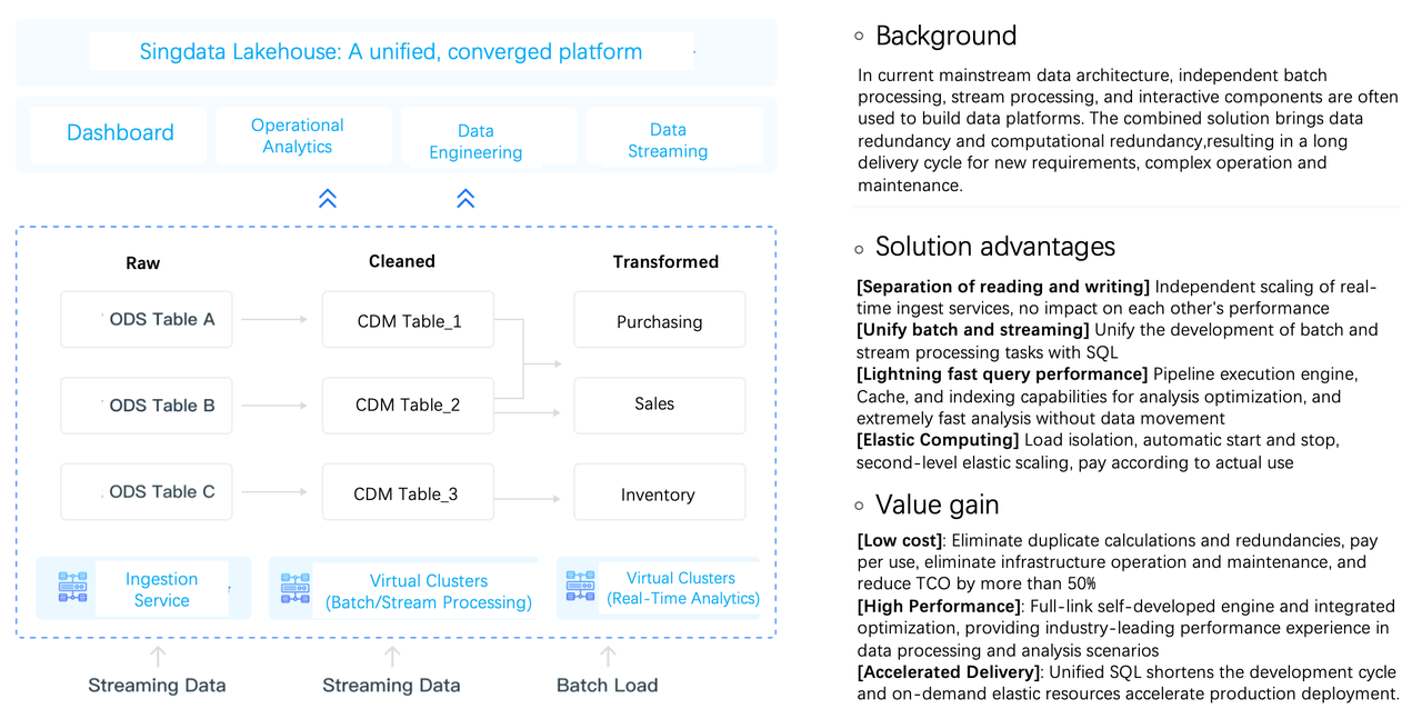 By transitioning to Singdata Lakehouse, enterprises can elevate their traditional data management and analytics solutions, thereby achieving streamlined data management and sophisticated analysis capabilities.