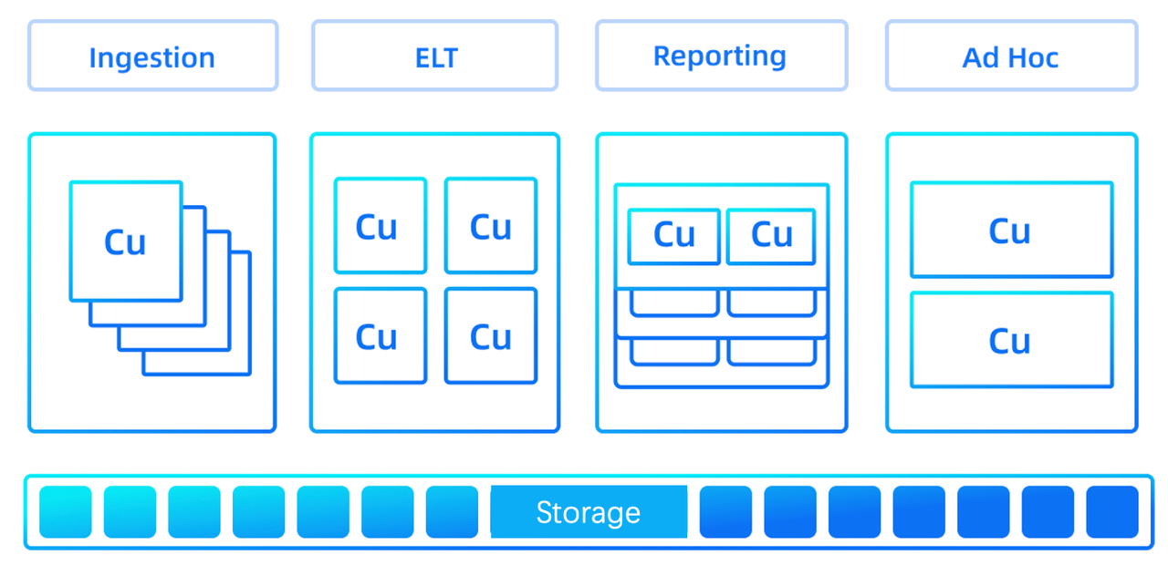 Singdata Lakehouse utilizes a virtual computing cluster architecture with a decoupled storage and compute layer, offering a specialized execution engine tailored for ETL and analytical tasks to optimize computing performance. Users can dynamically provision virtual clusters based on specific business needs, ensuring business-specific isolation and accommodating varying demands for high throughput and performance.